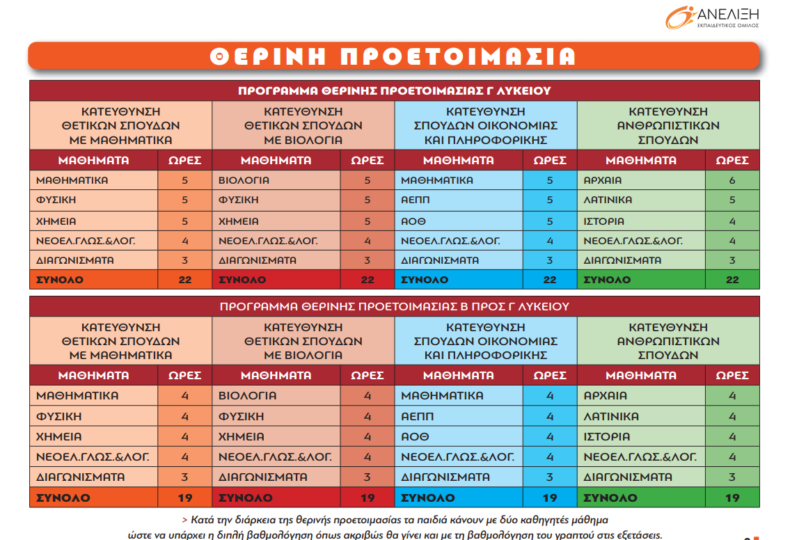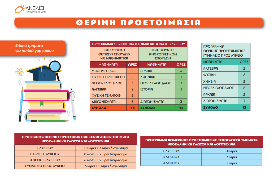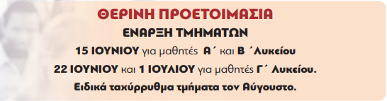 Θερινή Προετοιμασία στα Φροντιστήρια «ΑΝΕΛΙΞΗ»